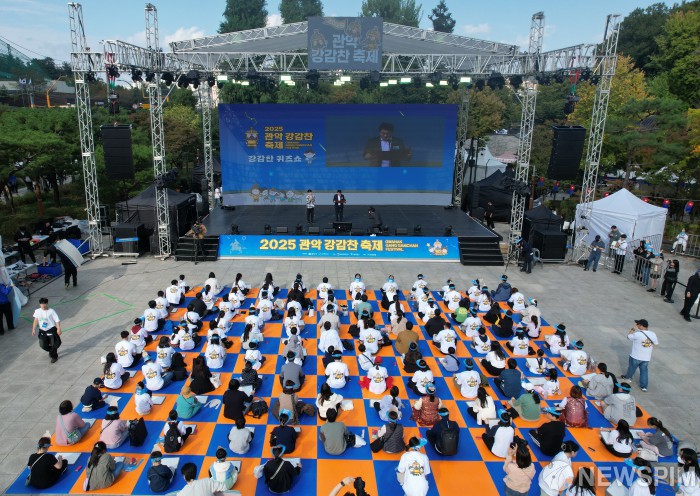 [서울=뉴스핌] 양윤모 기자 = 19일 '2025 관악강감축제'의 마지막인 3일차를 맞아 서울 관악구 낙성대공원 대광장에서 ‘강감찬 토크쇼 & 퀴즈쇼’가 개최됐다. 강감찬 토크쇼에서는 개그맨이자 한국사 강사인 ‘서경석’이 스토리텔러로 나서 박준희 관악구청장과 함께 강감찬 장군과 고려 역사를 되짚어보는 시간을 가졌다. 이어서 진행된 강감찬 퀴즈쇼는 고려시대 과거시험을 모티브로 한 ‘역사 퀴즈대회’로 120여 명의 주민들이 참가해 역사 지식을 겨뤘다. [사진=관악구청] 2025.10.19 yym58@newspim.com