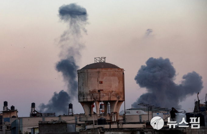 19일(현지시간) 가자지구 칸유니스에서 이스라엘군 공습으로 검은 연기가 피어오르는 모습. [사진=로이터 뉴스핌] |