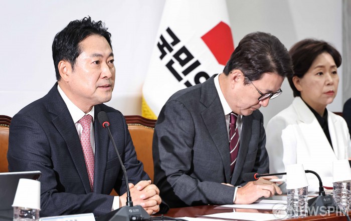 [서울=뉴스핌] 윤창빈 기자 = 장동혁 국민의힘 대표가 20일 오전 서울 여의도 국회에서 열린 최고위원회의에서 모두발언을 하고 있다. 2025.10.20 pangbin@newspim.com