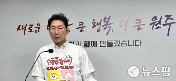 [원주=뉴스핌] 이형섭 기자 = 원강수 원주시장이 글로벌 축제로 도약하는 2025 원주만두축제를 설명하고 있다. 2025.10.20 onemoregive@newspim.com |