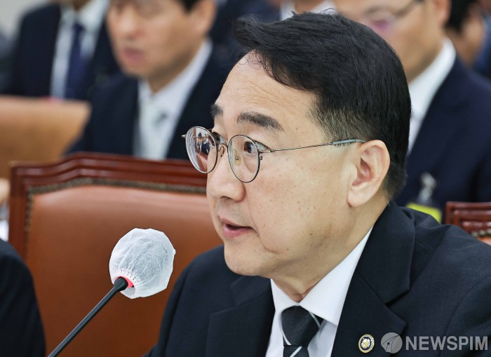 [서울=뉴스핌] 윤창빈 기자 = 김인호 산림청장이 20일 국회에서 열린 농림축산식품해양수산위원회의 산림청 등에 대한 국정감사에서 위원 질의에 답하고 있다. 2025.10.20 pangbin@newspim.com
