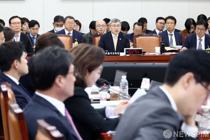 [서울=뉴스핌] 최지환 기자 = 정근식 서울시 교육감이 20일 오전 서울 여의도 국회 교육위원회 국정감사에서 의원 질의에 답변하고 있다. 2025.10.20 choipix16@newspim.com