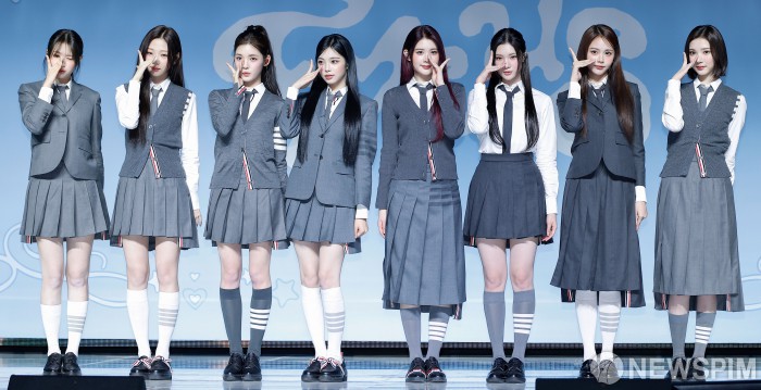 [서울=뉴스핌] 류기찬 기자 = 걸그룹 하츠투하츠(Hearts2Hearts)가 20일 오후 서울 용산구 블루스퀘어 SOL트래블홀에서 열린 첫 미니앨범 ‘FOCUS' 발매 기념 미디어 쇼케이스에서 포즈를 취하고 있다. 2025.10.20 ryuchan0925@newspim.com