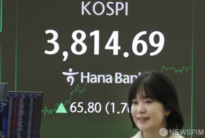 [서울=뉴스핌] 양윤모 기자 = 미중 무역 갈등 완화 기대감에 20일 오후 코스피가 전장 종가보다 65.80 포인트(1.76%) 상승하며 3814.69로, 코스닥은 16.23 포인트(1.89%) 상승한 875.77로 장을 마감한 가운데, 서울 중구 하나은행 딜링룸에서 직원들이 업무를 보고 있다. 서울외환시장에서 달러/원 환율은 전장 대비 1.60원 하락한 1419.60원에 거래를 마감했다. 2025.10.20 yym58@newspim.com