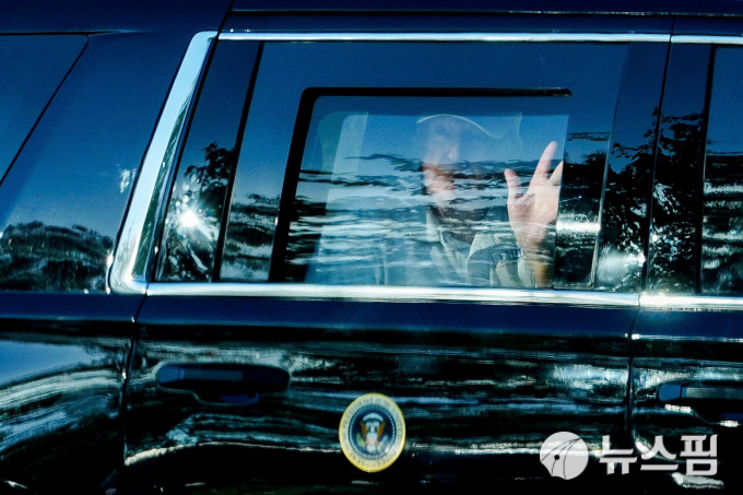 미국 버지니아주 스털링에 있는 트럼프 내셔널 골프클럽에서 골프 라운딩을 마친 뒤 차량에 올라 손을 흔드는 도널드 트럼프 미국 대통령의 모습. (2025년 10월 4일) [사진=로이터 뉴스핌] |