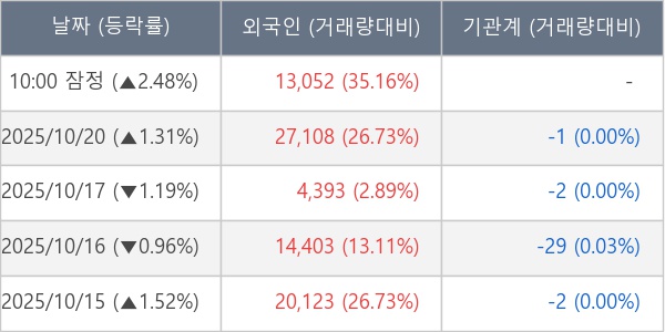 [표] 외국인ㆍ기관 순매매량 (단위 주)