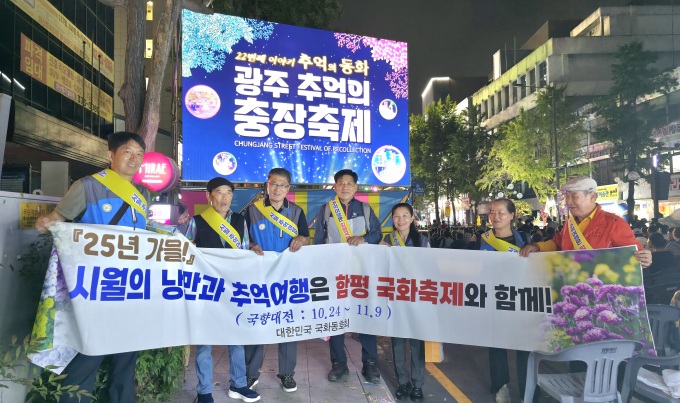 함평군은 대한민국 국화동호회가 최근 광주시 충장축제 개막식 현장에서 국향대전 홍보활동을 펼쳤다고 21일 밝혔다. 이번 현장 홍보는 지난해에 이어 두 번째다.