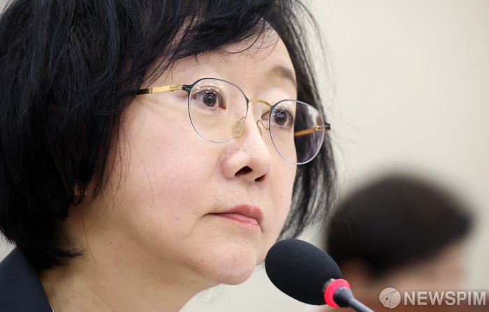 [서울=뉴스핌] 정일구 기자 = 오유경 식품의약품안전처장이 21일 서울 여의도 국회 보건복지위원회에서 열린 식품의약품안전처 등에 대한 국정감사에서 의원 질의를 경청하고 있다. 2025.10.21 mironj19@newspim.com