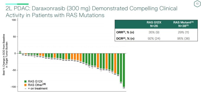 회사는 비소세포폐암 임상 개발 프로그램과 RAS 선택적 억제제에 대한 연구도 계속 진행하고 있으며, 1차 췌장관 선암종 및 보조 요법 환경에서 다락손라십의 추가 3상 연구도 올해 시작될 예정이다.