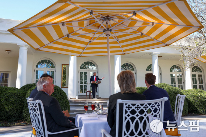 린지 그레이엄 상원의원(공화·사우스캐롤라이나)과 조시 홀리 상원의원(공화·미주리) 등이 2025년 10월 21일 미국 워싱턴 D.C. 백악관 로즈가든 오찬에서 도널드 트럼프 미국 대통령의 발언을 경청하고 있다.[사진=로이터 뉴스핌] |