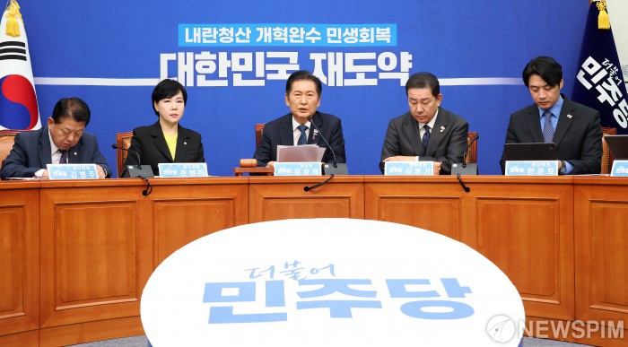 [서울=뉴스핌] 정일구 기자 = 정청래 더불어민주당 대표가 22일 오전 서울 여의도 국회에서 열린 최고위원회의에서 모두발언을 하고 있다. 2025.10.22 mironj19@newspim.com