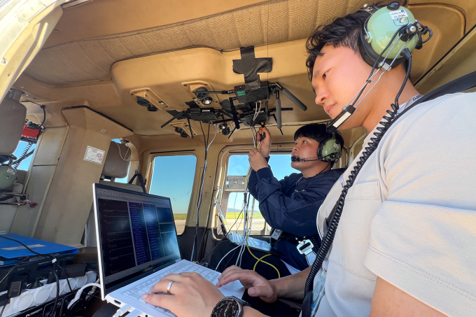 사진은 KT 직원들이 인천 아라뱃길 구간에서 UAM의 주요 기술요소를 점검하는 모습. [사진=KT] |