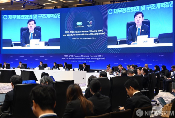 [서울=뉴스핌] 구윤철 부총리 겸 기획재정부 장관이 22일 인천 인스파이어 리조트에서 열린 아시아-태평양경제협력체(APEC) 재무·구조개혁장관회의 합동세션을 주재하고 있다. [사진=기획재정부] 2025.10.22 photo@newspim.com