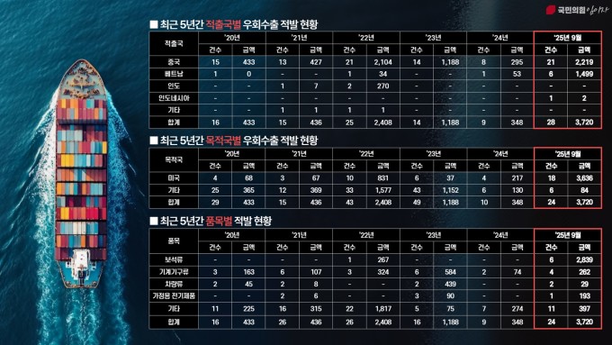 2025년 9월 기준 우회수출 통계[제공=임이자 국민의힘 의원실] |