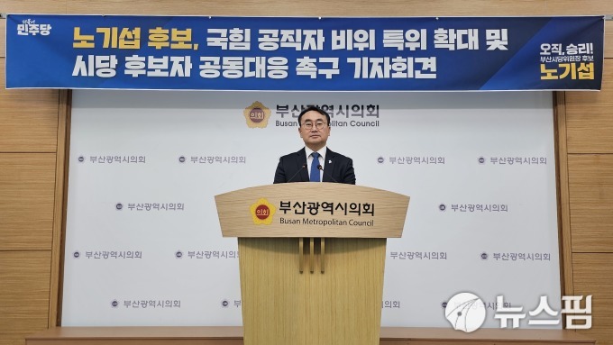 [부산=뉴스핌] 남동현 기자 = 더불어민주당 부산시당위원장에 출마를 선언한 노기섭 후보가 국민의힘 소속 기초지자체 단체장들에 대한 비위 특별위원회를 확대하고, 시당위원장 후보자들의 공동 대응을 촉구했다.
