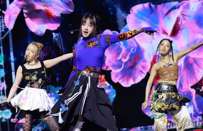 [서울=뉴스핌] 김학선 기자 = 그룹 비비업(VVUP/킴, 팬, 수연, 지윤)이 22일 서울 용산구 블루스퀘어에서 열린 첫 번째 미니앨범 쇼케이스에서 'House Party' 무대를 선보이고 있다. 'House Party'는 세련된 신스 사운드와 경쾌한 하우스 비트가 어우러진 일렉트로닉 장르로, 사이버 감성과 네온빛으로 물든 클럽 무드가 인상적인 곡이다. 2025.10.22 yooksa@newspim.com