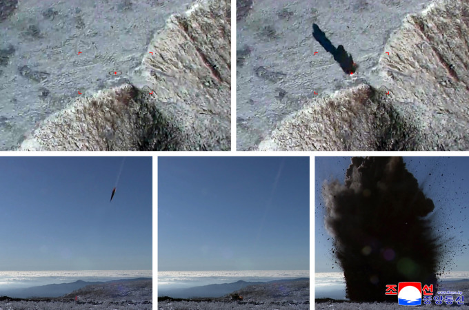 통신은 "평양시 역포구역에서 북동방향으로 발사된 2개의 극초음속 비행체는 함경북도 어랑군 궤상봉 등판의 목표점을 강타했다"고 밝혔다.