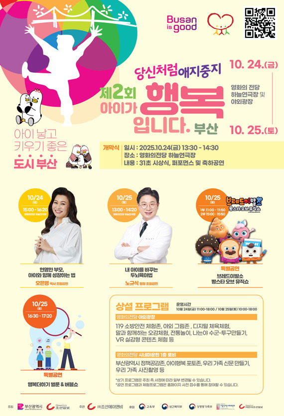 [부산=뉴스핌] 남동현 기자 = 부산시는 저출생 인식 개선과 함께육아 문화 확산을 위한 '제2회 아이가 행복입니다. 부산' 행사를 24일부터 25일까지 양일간 영화의전당 하늘연극장과 야외광장에서 개최한다고 23일 밝혔다.
