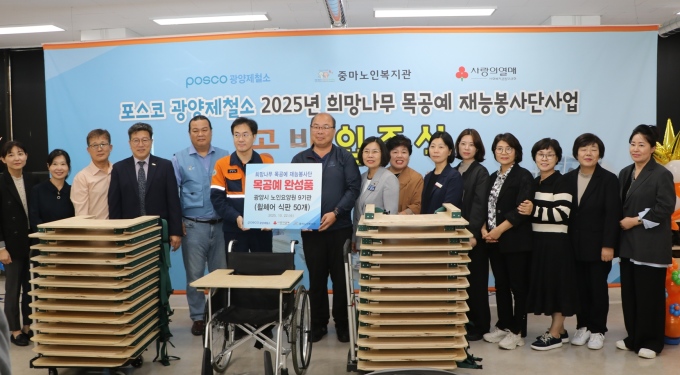 [광양=뉴스핌] 권차열 기자 = 포스코 광양제철소가 지역 장애인을 위한 맞춤형 목공예 제품을 제작·기부하며 상생 나눔을 이어가고 있다고 23일 밝혔다.