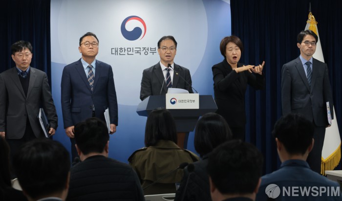 [서울=뉴스핌] 이길동 기자 =김영수 국무조정실 국무1차장이 23일 정부서울청사에서 이태원 참사 합동감사 결과 브리핑을 하고 있다. 2025.10.23 gdlee@newspim.com