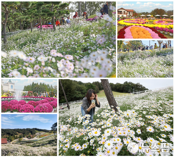 바람의 언덕 일대에서는 형형색색 국화꽃 사이로 새하얀 구절초가 어우러져 사시사철 푸른 소나무와 함께 한 폭의 수채화를 연상케 한다.