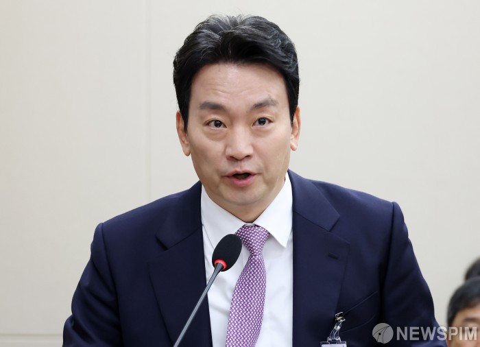 [서울=뉴스핌] 정일구 기자 = 박장범 한국방송공사(KBS) 사장이 23일 오전 서울 여의도 국회 과학기술정보방송통신위원회에서 열린 한국방송공사 등에 대한 국정감사에서 업무보고를 하고 있다. 2025.10.23 mironj19@newspim.com