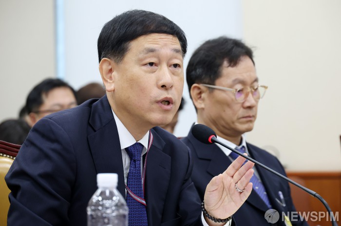 [서울=뉴스핌] 정일구 기자 = 김영관 방송미디어통신위원회 사무처장 전담직무대리가 23일 오전 서울 여의도 국회 과학기술정보방송통신위원회에서 열린 한국방송공사 등에 대한 국정감사에서 의원 질의에 답하고 있다. 2025.10.23 mironj19@newspim.com
