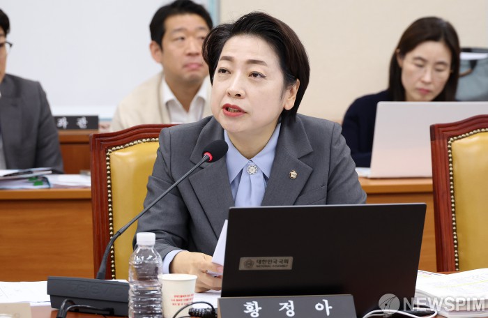 [서울=뉴스핌] 정일구 기자 = 황정아 더불어민주당 의원이 23일 오후 서울 여의도 국회에서 열린 과학기술정보방송통신위원회 한국방송공사 등에 대한 국정감사에서 질의하고 있다. 2025.10.23 mironj19@newspim.com