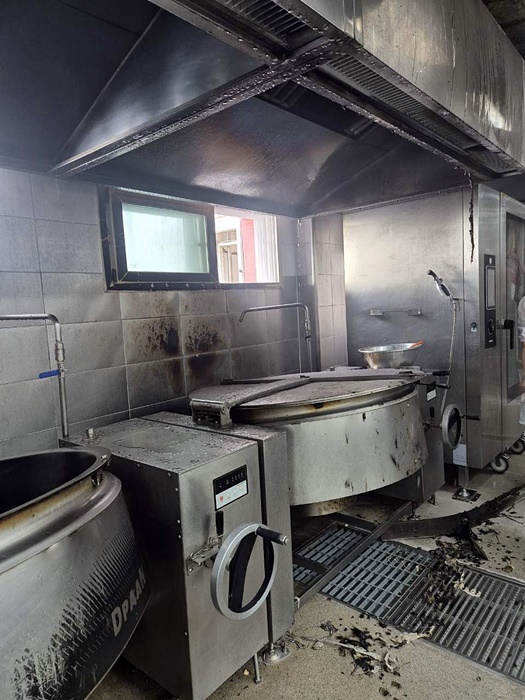 | 23일 오전 11시36분쯤 청도군 청도읍의 한 고등학교 교육연구시설에서 급식실 내 음식물 조리 부주의로 추정되는 화재가 났다.[사진=경북소방본부] 2025.10.24 nulcheon@newspim.com |