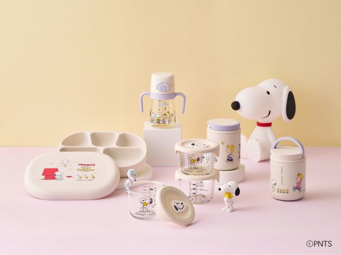 이번 제품은 세계적인 캐릭터 브랜드 '피너츠(Peanuts)'와의 협업으로 이루어졌으며, ▲흡착 식판 세트 ▲원터치 PPSU 양손 빨대컵 ▲푸드자 ▲이유식 용기 실리콘캡 원형 4종에 피너츠의 대표 캐릭터인 '스누피와 친구들'을 적용해 귀여운 디자인과 친근한 감성을 더했다.