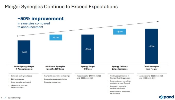AI 전력 수요 급증과 LNG 수출 확대가 장기적인 호재라면 단기적으로는 합병 시너지 효과가 실적을 북돋는다. 특히 사우스웨스턴과의 통합 효과(비용 절감 등)가 예상보다 크게 나타나고 있다. 당초 예상보다 무려 50%나 높은 수준이 기대되고 있다.