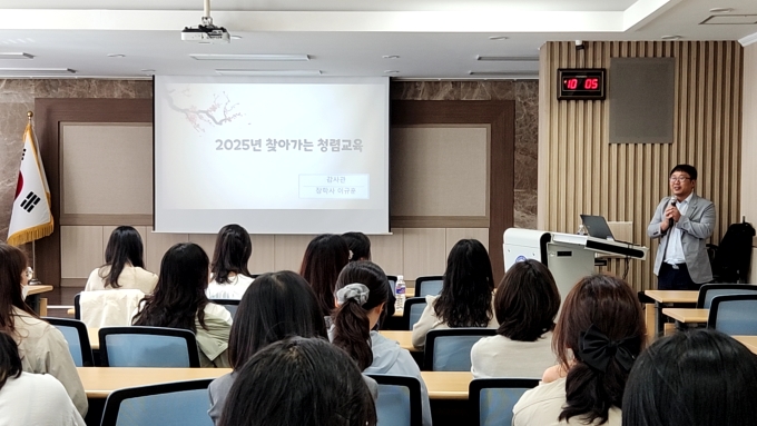 청렴 연수 강사로 충청남도교육청 감사관 청렴윤리팀 장학사가 공직자로서의 기본자세와 청렴한 늘봄학교 운영 방안에 대한 깊이 있는 강의를 진행했다. 참석자들은 실제 학교 현장에서 발생할 수 있는 다양한 사례 중심의 강의를 통해 청렴의 중요성을 다시 한번 되새기는 시간을 가졌다.