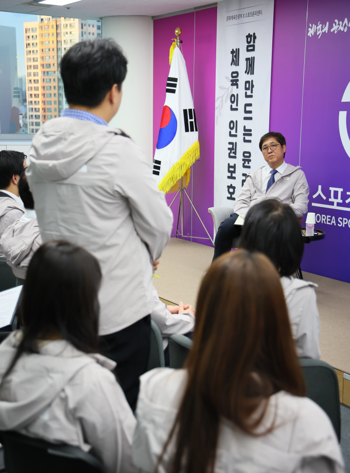 [서울=뉴스핌] 양진영 기자 = 문화체육관광부 최휘영 장관은 10월 24일, 스포츠윤리센터를 방문해 최근 체육계 내 아동 폭력 등 폭력 사태에 대한 대응 현황을 점검하고 윤리센터 직원들의 현장 목소리를 청취했다.
