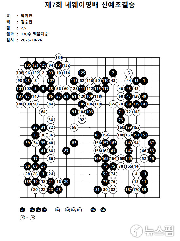 [서울=뉴스핌] 김용석 기자 = 한·중·일 신예, 시니어 대표선수가 맞대결한 녜웨이핑배 결승에서 한국 김승진 7단이 최종 우승을 차지했다.