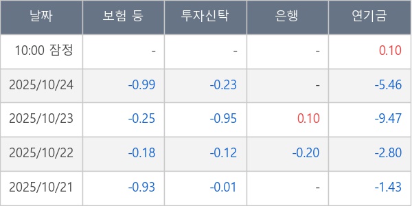 ※ 장중 매매동향은 잠정치이므로 실제 매매동향과 차이가 발생할수 있음
