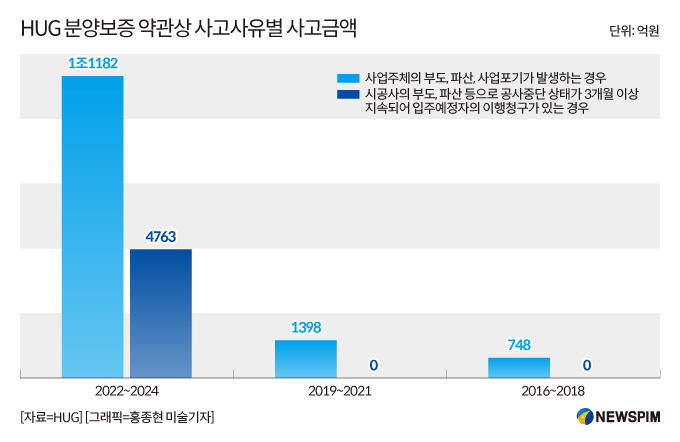 | HUG 분양보증 약관상 사고사유별 사고금액 [그래픽=홍종현 미술기자] |