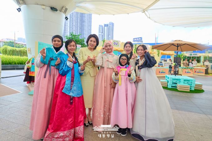 행사장을 찾은 김 여사는 한복을 입고 방문한 현지 관람객들을 반갑게 맞이하며 한국 문화에 대한 관심에 고마움을 전하고 함께 기념사진도 촬영했다.