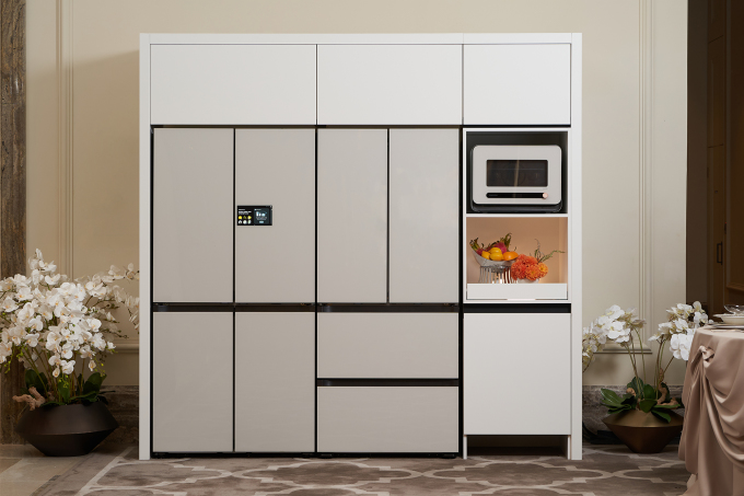 VIP 응접실로 꾸며진 체험 공간에서는 '비스포크 AI 하이브리드 키친핏 맥스' 냉장고, '비스포크 AI 김치플러스 키친핏 맥스' 김치냉장고 등 '키친핏 맥스' 디자인의 냉장고와 올인원 조리기기 '비스포크 큐커 멀티' 등이 전시됐다.