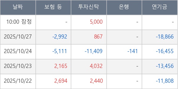 ※ 사모펀드 등 일부 기관의 순매매량은 표시되지 않음