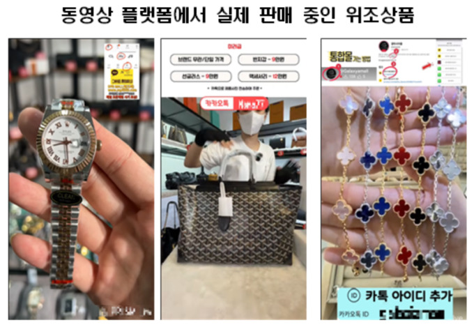 | 동영상 플랫폼에서 실제 판매 중인 위조상품 [자료=김동아 의원실] 2025.10.28 rang@newspim.com |