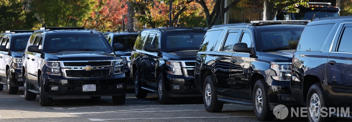 [서울=뉴스핌] 2025 경주 아시아태평양경제협력체(APEC) CEO 서밋 개막일인 28일 경북 경주시 한 숙소에 미국 정부 소속 경호 차량이 줄지어 주차돼 있다. [사진=APEC 2025 KOREA & 연합뉴스] 2025.10.28 photo@newspim.com
