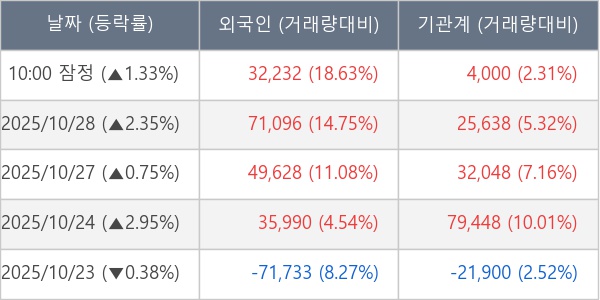 ※ 사모펀드 등 일부 기관의 순매매량은 표시되지 않음