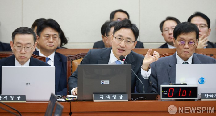 [서울=뉴스핌] 김학선 기자 = 임광현 국세청장이 29일 국회 기획재정위원회에서 열린 한국은행·국세청·관세청 등에 대한 종합감사에서 의원질의에 답하고 있다. 2025.10.29 yooksa@newspim.com