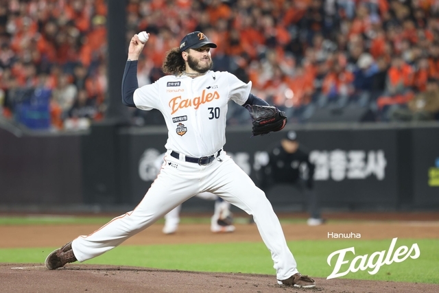 | [서울=뉴스핌] 한화의 선발 폰세가 29일 대전에서 열린 LG와의 KS 3차전에서 6이닝 2실점을 기록했다. [사진 = 한화] 2025.10.29 wcn05002@newspim.com |