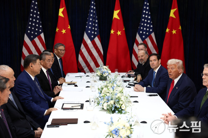 도널드 트럼프 대통령과 시진핑 중국 국가주석이 29일 부산에서 만나 정상회담을 하고 있다. [사진=로이터 뉴스핌]