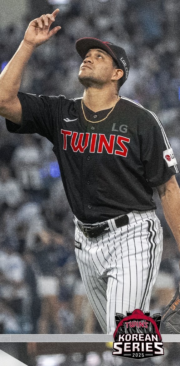 | [서울=뉴스핌] 장환수 스포츠전문기자= LG 선발 투수 요니 치리노스가 이닝이 끝날 때마다 하늘을 향해 손가락을 치켜 올리는 세리머니를 하고 있다. [사진=LG] 2025.10.30 zangpabo@newspim.com |