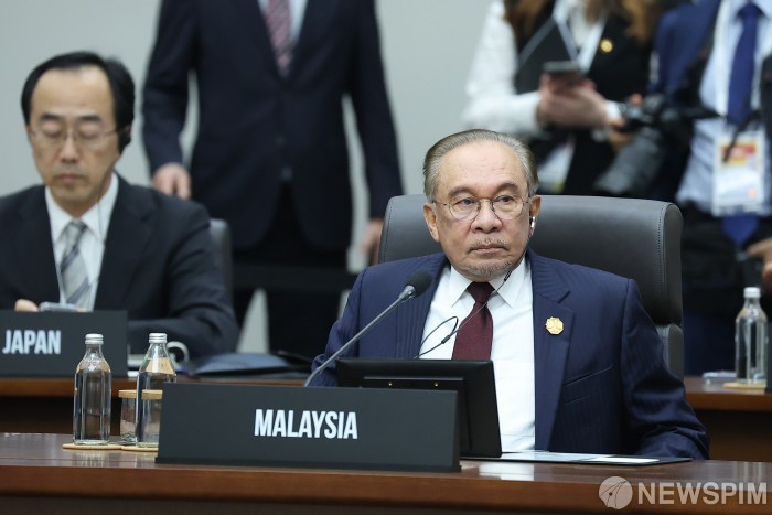 [서울=뉴스핌] 안와르 이브라힘 말레이시아 총리가 31일 경주화백컨벤션센터(HICO)에서 열린 2025 아시아태평양경제협력체(APEC) 정상회의 제1세션에 자리하고 있다. [사진=APEC 2025 KOREA & 연합뉴스] 2025.10.31 photo@newspim.com