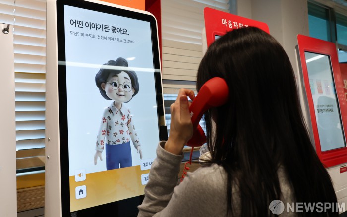 [고양=뉴스핌] 최지환 기자 = 저동고등학교 재학생들이 31일 오후 경기 고양시 저동고등학교에서 열린 '2025 경기도교육청 찾아가는 생명존중 캠페인'에서 AI 기반 마음상담 기기 '위로미'를 체험하고 있다. 2025.10.31 choipix16@newspim.com