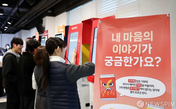 [고양=뉴스핌] 최지환 기자 = 저동고등학교 재학생들이 31일 오후 경기 고양시 저동고등학교에서 열린 '2025 경기도교육청 찾아가는 생명존중 캠페인'에서 AI 기반 마음상담 기기 '위로미'를 체험하고 있다. 2025.10.31 choipix16@newspim.com