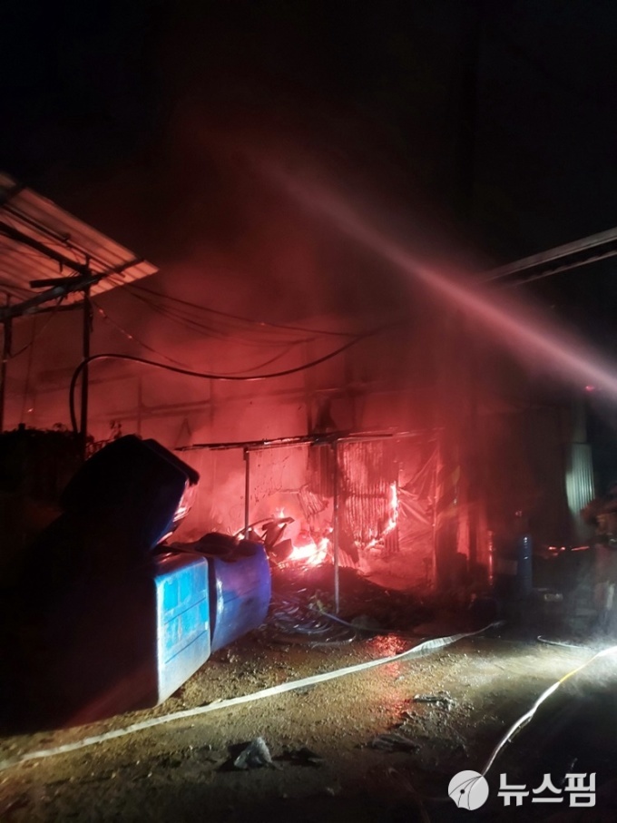| 30일 오전 0시42분쯤 김천시 어모면 능치리의 한 돈사에서 원인을 알 수 없는 화재가 발생했다.[사진=경북소방본부] 2025.10.30 nulcheon@newspim.com |